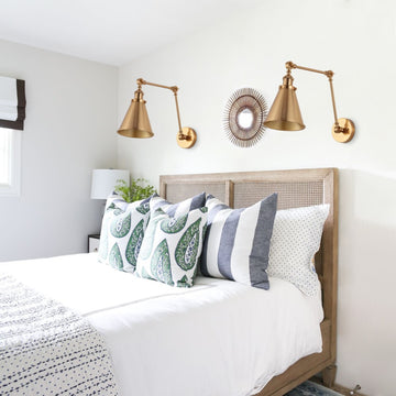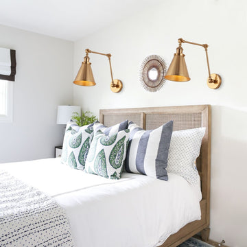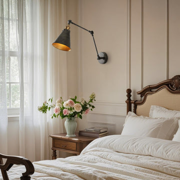 With an adjustable arm and easily focused metal shade, this sconce is the perfect solution for bedside lighting - no nightstands required! For added luxury, have your electrician install a switch below each light so you don't have to get out of bed to turn it on or off. When space is limited, they also make for excellent focused lighting, such as over bulky wall art, or above a vanity mirror. With LED compatibility, you'll rarely have to reach up to change the bulb.