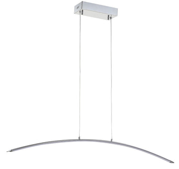 A single, curved line is suspended by clean lines in this sleek pendant. An easy addition to a contemporary space, this piece features an adjustable drop and an integrated LED light. Perfectly suited to hang over a kitchen island or dining area.