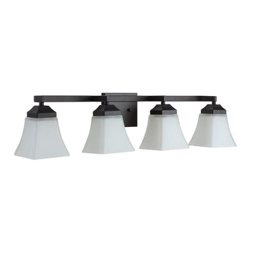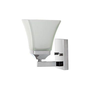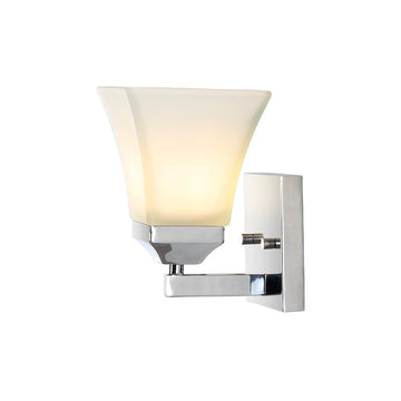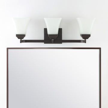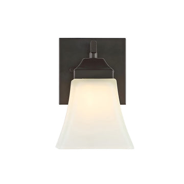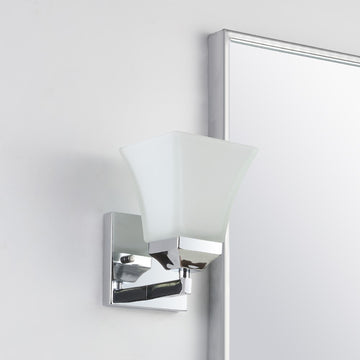 The square design of this wall sconce gives it a pared-down traditional look. A minimalist matte-black finish and frosted shade add low-key style over a kitchen sink or bathroom mirror. Use several as wall sconces down a hallway.