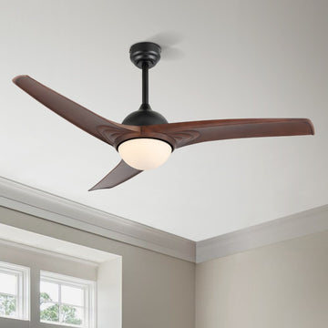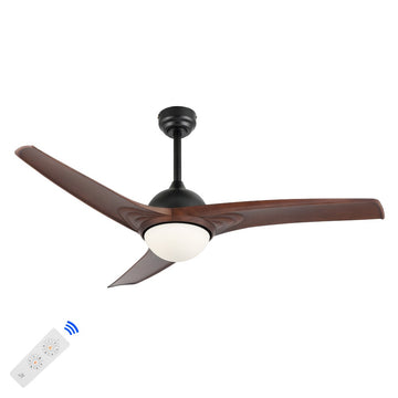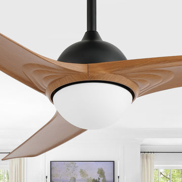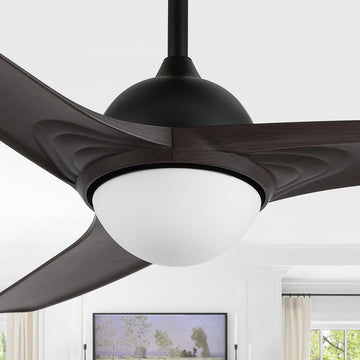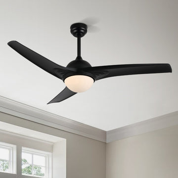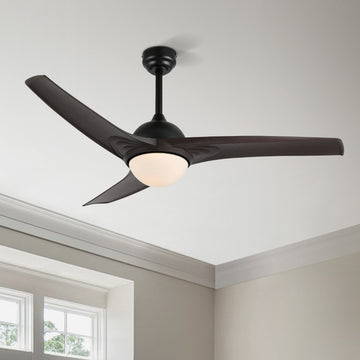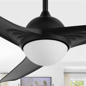 The all-black body and fan blades complemented by a frosted LED orb light create this fan's modern silhouette