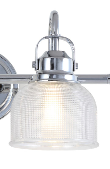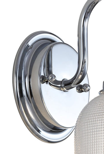 - Textured glass and polished chrome come together to create a chic, classic combination for this sconce