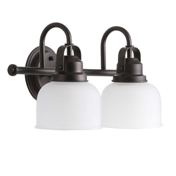 With a hint of texture on the glass shade to blur the glare of the bulb, this elegant sconce is perfect for a bathroom or vanity setting that calls for bright, but not harsh, light. On either side of a mirror, you'll find this stylish piece the perfect addition to your morning makeup routine, as it is compatible with a variety of bulbs. Also versatile within any style of decor, we particularly love seeing these in bathrooms and kitchens, where the arch of the light's arm is reminiscent of the curve of a beautiful faucet.
