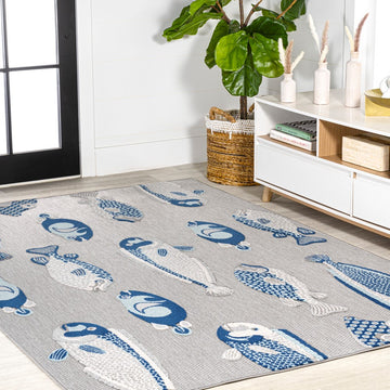 Add seaside style to your home with deep sea fish in a modern rug pattern. Our graphic rug will add bold color to the living room, dining room, bedroom or office. Perfect for the porch, this pet-friendly and low-pile design is easy to clean.