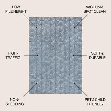 This timeless fan pattern comes from vintage and Art Deco decor but it's also giving us updated traditional vibes. The geometric design is woven from soft, durable yarn in a high-low pile that accentuates the pattern. Elevate your living room, dining room, bedroom, or entry with this easy-care, family-friendly rug. Please note that variations in the rug's appearance may occur when the fibers are brushed due to natural light reflection and weaving characteristics.