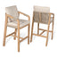 Porto Modern Coastal Tub Roped Acacia Wood Outdoor Bar Stool with Cushions and Armrests
