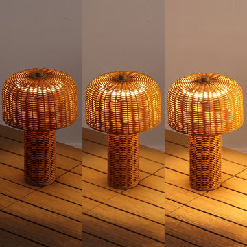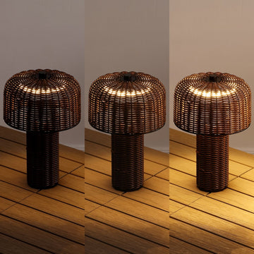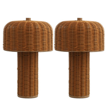 This pair of wicker lamps combines modern design with Scandinavian flair for the deck, porch or patio. The metal-framed base and shade are woven with durable faux wicker, and the LED bulb provides hours of warm, soft light. This stylish pair of outdoor lamps includes a charging cord.