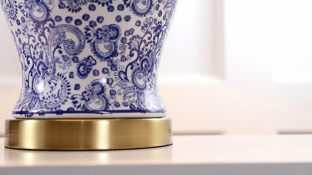 - Chinoiserie chic, this hand-painted ginger jar lamp base fits seamlessly with traditional décor