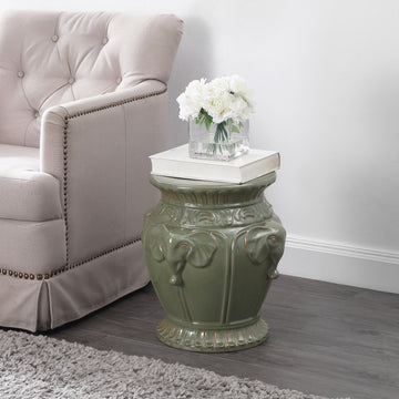 Anita 18" Classic Vintage Ceramic Indoor/Outdoor 4-Elephant Garden Stool