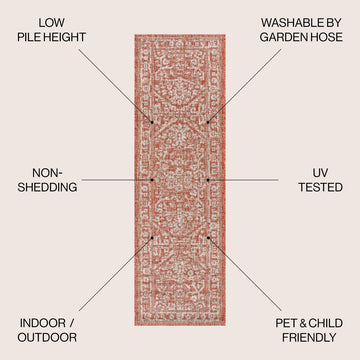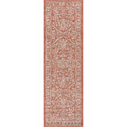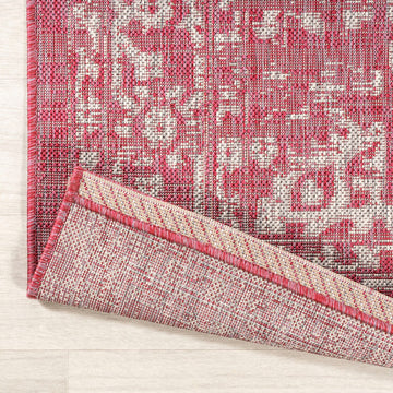 This colorful medallion rug adds rich Bohemian style to an outdoor porch or patio. Varied tones of taupe mingled with a rusty-red pattern give this rug a hand-woven, vintage vibe. The flatweave design is great for high-traffic spaces indoors too.