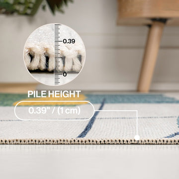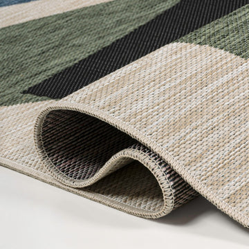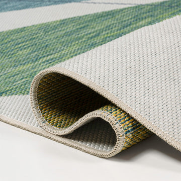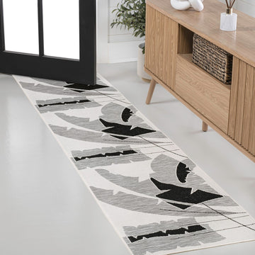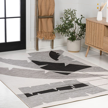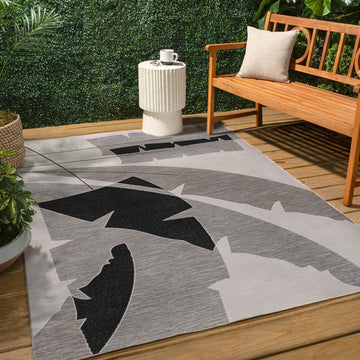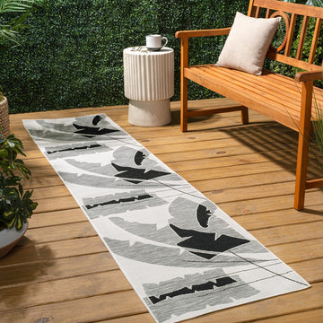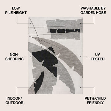 The bold pattern of this classic rug is inspired by vintage tropical style. It's made from durable synthetic fibers woven into an abstract design of tropical palm leaves. Make a statement with this groovy rug outdoors, or in the bedroom, living room or dining room.