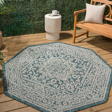 Sinjuri Medallion Textured Weave Indoor/outdoor Octagon Rug
