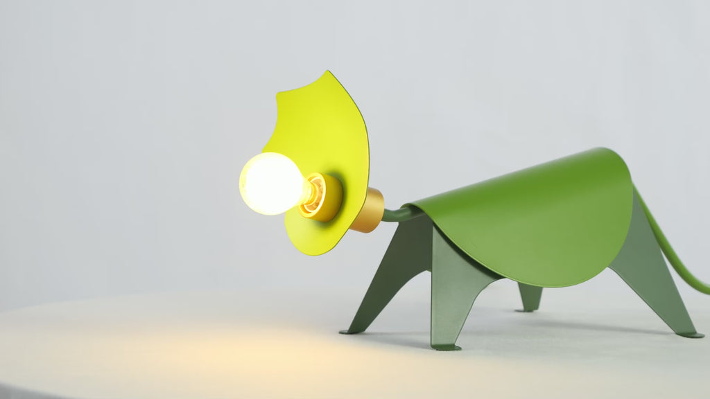 This colorful dinosaur shaped metal lamp will add joy to any contemporary room it's in. The unique curves and design will infuse industrial design into your modern home. Whether used in a kid's room or in a kitschy home office, this is the perfect addition to any eclectic space.