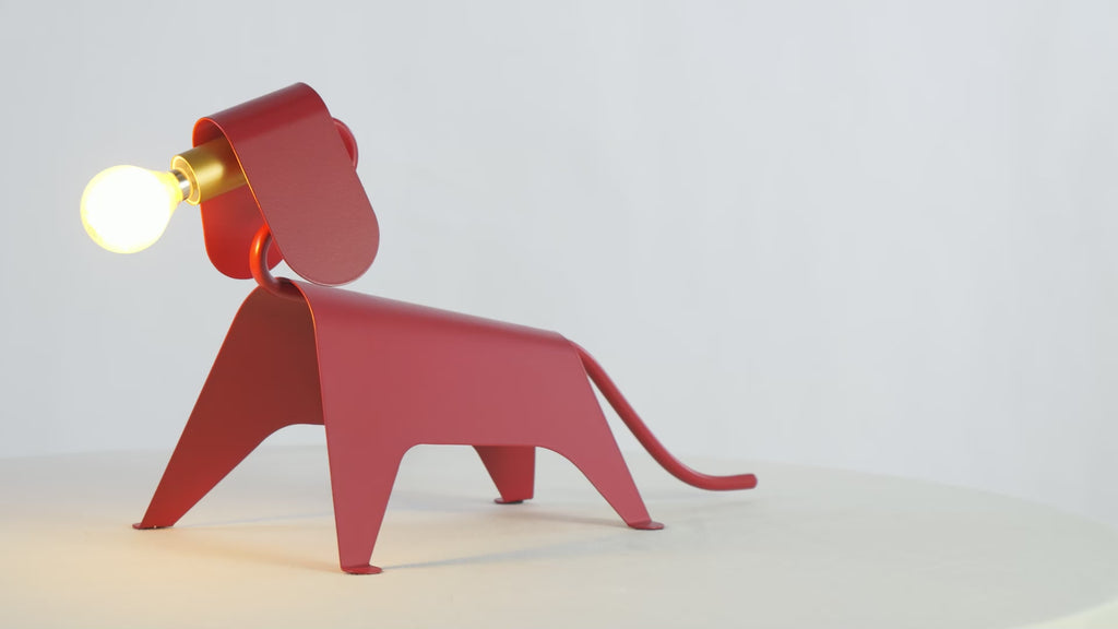 Designed to look like a friendly dog, kids and adults alike will love this playful metal lamp. Designed to pull from industrial and modern elements, this lamp is the perfect way to liven up any minimalist room. Whether you want to lighten up your child's bedroom or your home office, this contemporary lamp is a great addition.