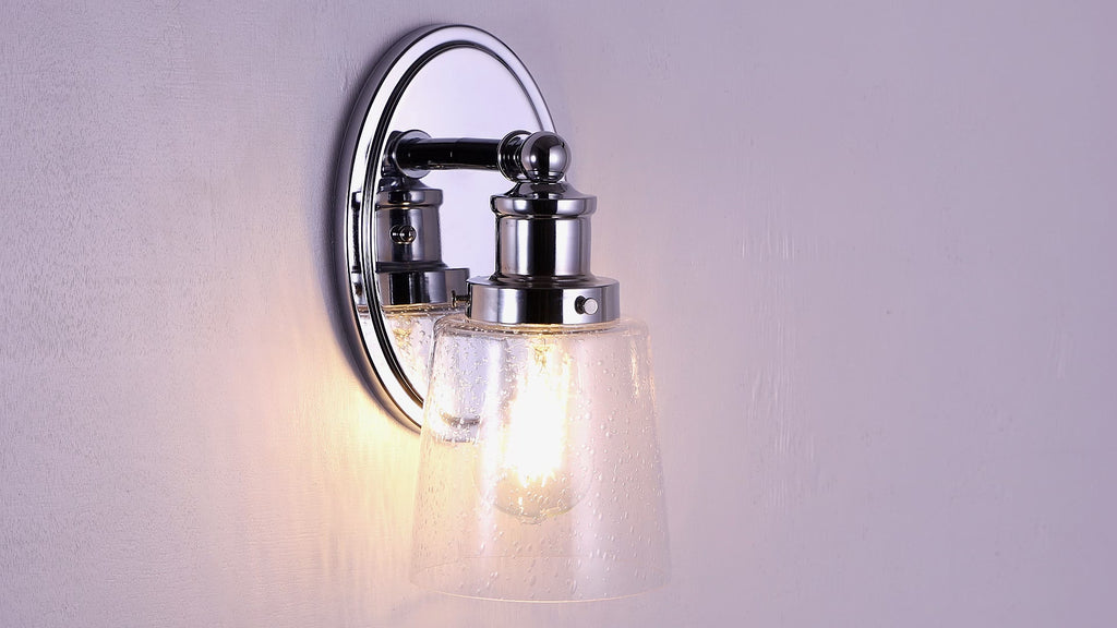 Elevate your urban apartment, cottage or rustic with our versatile take on a classic wall light. The industrial Edison-style LED bulb casts a warm glow, providing plenty of light. A seeded glass bell shade adds elegant vintage style to your bath vanity, or above a kitchen sink.