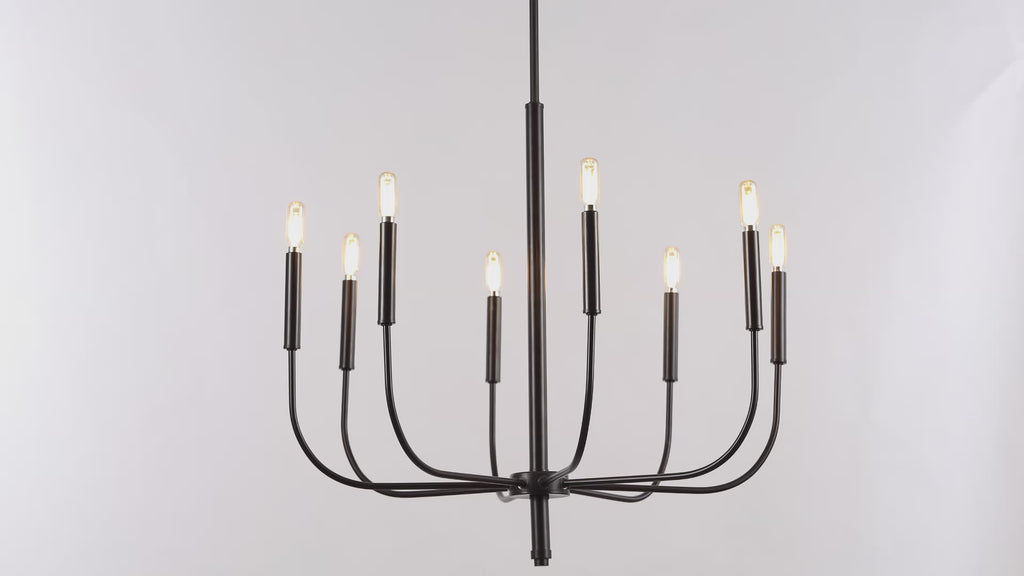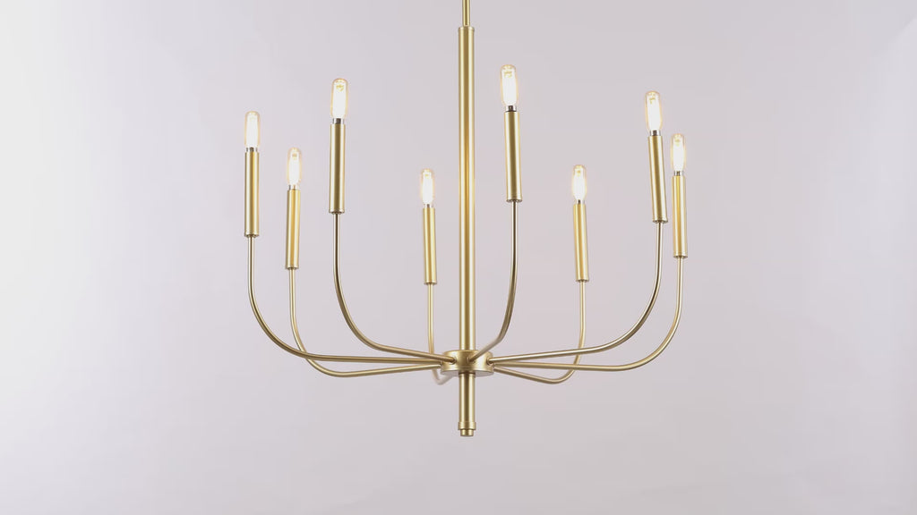 Clean lines and sleek finishes give this modern chandelier a minimalist aesthetic. Eight LED candle bulbs provide plenty of warm, bright light, while the size is small enough for a kitchen island, bedroom or foyer. Use this timeless design in a modern farmhouse, transitional dining room, or to add a touch of glam above a rustic table.