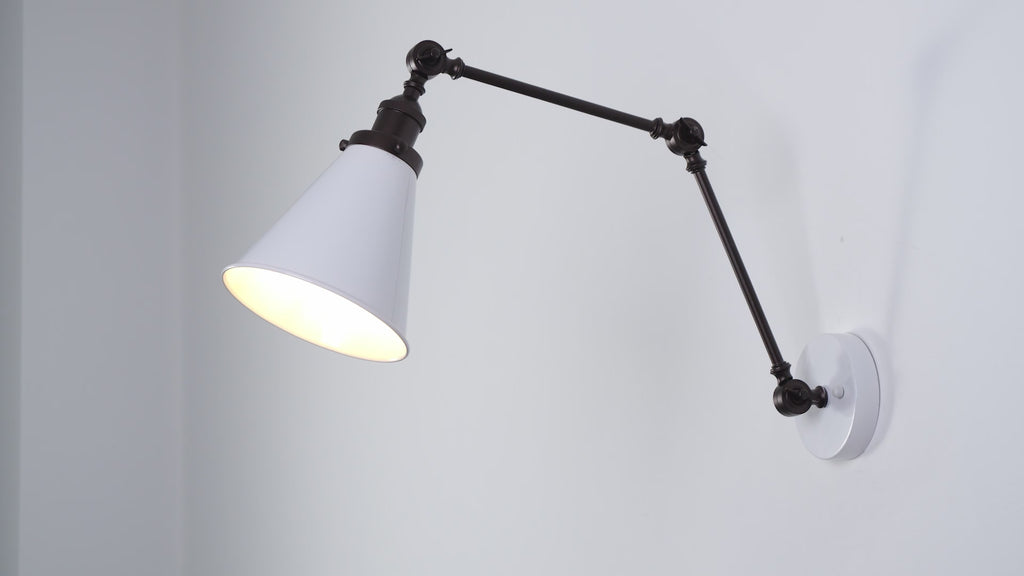 With an adjustable arm and easily focused metal shade, this sconce is the perfect solution for bedside lighting - no nightstands required! When space is limited, they also make for excellent focused lighting, such as over bulky wall art, or above a vanity mirror. With LED compatibility, you'll rarely have to reach up to change the bulb.